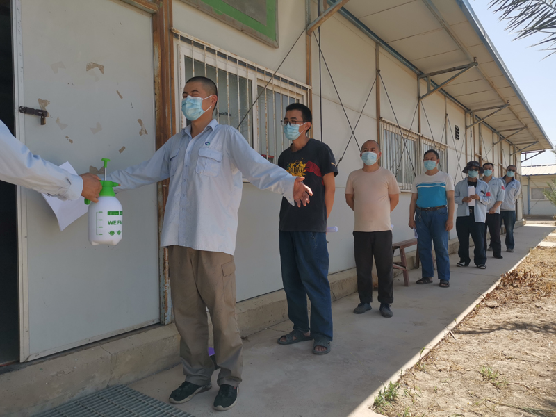 伊拉克境內疫情蔓延的同時,華事德電站#5和#6機組年度檢修工作還未結束,業主方人員流量大、流動密集,給現場疫情防控帶來了巨大壓力。項目部根據伊拉克國內疫情的發展,制定了系列的項目現場防控措施,包括定期消毒、增加中伊方人員體溫監測頻次、全員必須佩戴口罩、生活區封閉管理、加強個人衛生管理等各種預防手段。