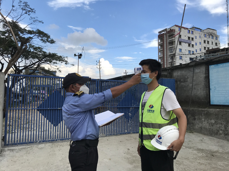 4月5日,項目所在地納拉揚甘杰查出首例新冠病例,項目應急響應等級從二級提高到一級(最高級),項目工作區、生活區加強門禁管控,嚴格做好人員出入及往來生活物資的消毒檢查,堅決阻斷病毒輸入途徑,同時采取當地自購和國內集采兩種途徑,備齊備足口罩、消毒液、洗手液和防疫常用藥品,儲備充足的生活物資,現場管控查巡和防洪度汛同步開展,實現人防、物防、技防有機結合。