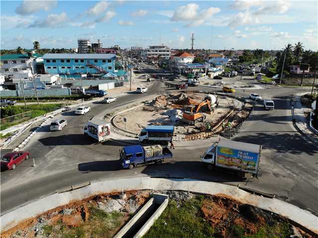 該項目位于圭亞那首都喬治敦市,旨在對該市交通主干道進行升級改建。喬治敦市地處南美洲加勒比區域,雨季降雨量大,項目施工的道路為市區主交通干道,道路交通繁忙,受新冠疫情等多方面影響,項目施工困難重重。為順利推進工程建設,項目部積極與業主、物資供應商溝通聯系,多方面、多渠道籌集路面攤鋪所需的施工材料。為避開車流量高峰期,項目部主動與警察局溝通,同時積極協調分包商,在夜間加班加點進行施工,并緊抓有利天氣搶進度,最終如期完成土建工程,得到了業主的高度贊賞。