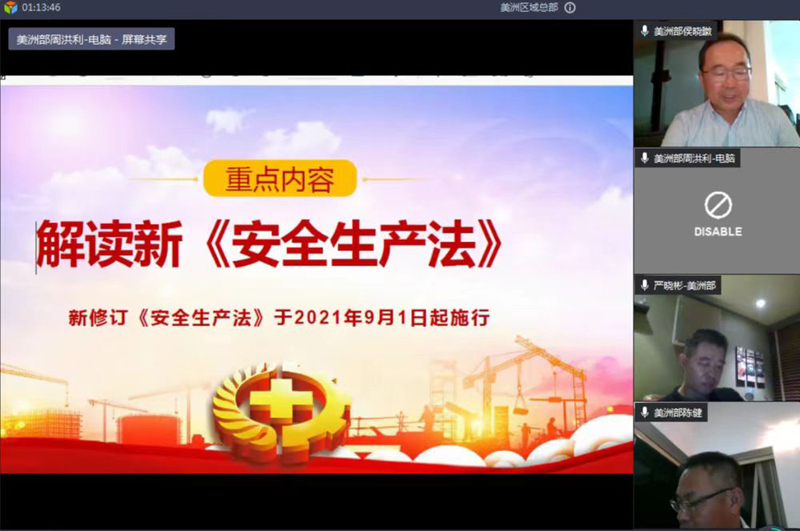 6月8日,公司副總經(jīng)理、美洲區(qū)域總部總經(jīng)理侯曉暾組織開展區(qū)域總部“安全生產(chǎn)月”啟動儀式,期間套開美洲區(qū)域總部2022年第二次HSE管理委員會會議。HSE管委會領導小組聽取了區(qū)域總部上半年安全生產(chǎn)管理工作完成情況以及下半年工作計劃,對繼續(xù)深入開展安全生產(chǎn)標準化、QHSE監(jiān)督檢查和專項安全生產(chǎn)任務作出進一步安排,審議通過了管委會成員調(diào)整事宜。“安全生產(chǎn)月”啟動儀式上,侯曉暾切實履行“一崗雙責”“安全第一責任人”職責,結合“安全生產(chǎn)月”活動主題,深入解讀新《中華人民共和國安全生產(chǎn)法》,號召全體領導干部認真學習新安法規(guī)定,以優(yōu)異的表現(xiàn)貫徹落實“三管三必須”。區(qū)域總部副總經(jīng)理嚴曉彬傳達了集團公司深刻吸取事故教訓從嚴從實抓好事故防范工作的要求,深刻剖析了公司2022年以來發(fā)生的境外安全生產(chǎn)和社會安全事件,以沉痛的安全事件為教訓,為區(qū)域總部境外項目安全生產(chǎn)和保障人身安全敲響警鐘。