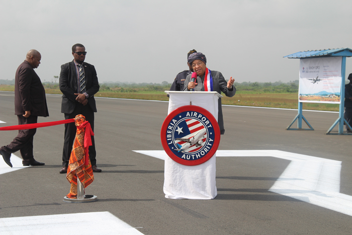 上午十點半,竣工典禮準時開始,瑟利夫總統在典禮上發表了重要講話。瑟利夫總統對中國電建的施工質量予以高度贊賞,并對中國電建為改善當地基礎設施條件所付出的辛勤勞動表示感謝。他指出,利比里亞羅伯茨國際機場跑道升級項目的竣工為實現利比里亞的“現代化革命”目標邁出了重要一步。